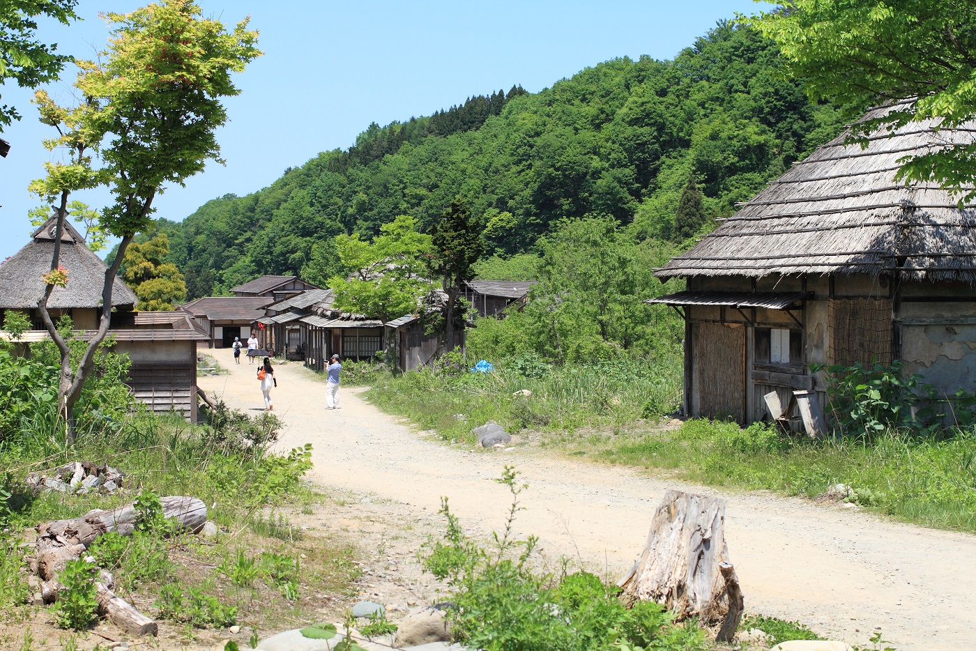 見学するため漁村エリアの建物の裏に陣取る。
