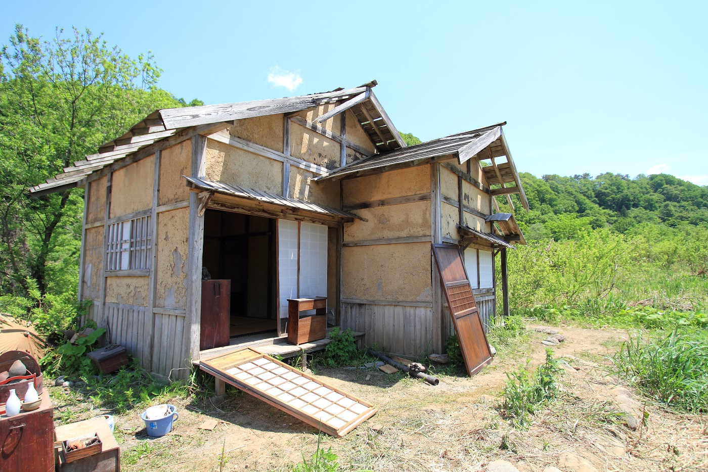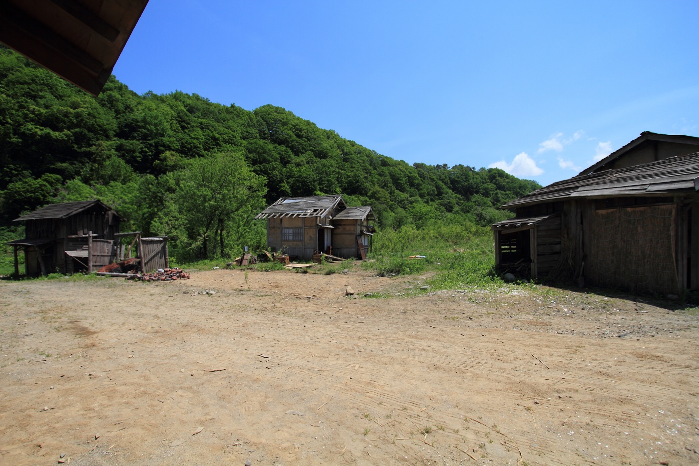 その張りぼてセットから少し離れた場所にある、このボロボロの小屋 ↓