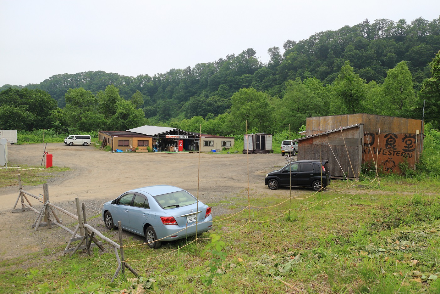 ↓ 建物手前のスペースに監督のタープがあり、