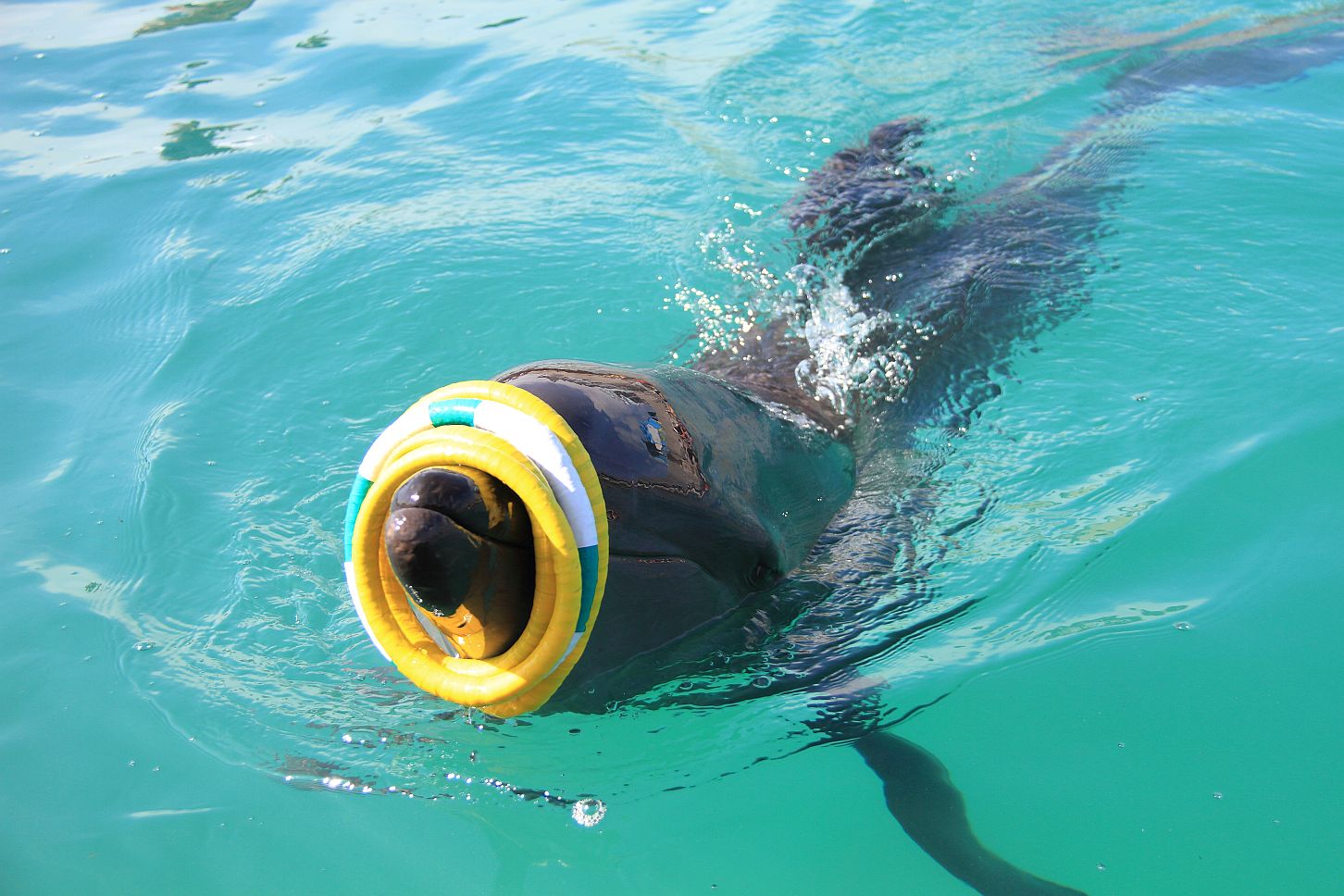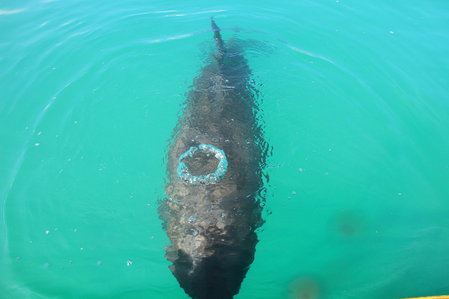 イルカにくっ付いて泳ぐのは結構大変でした。
