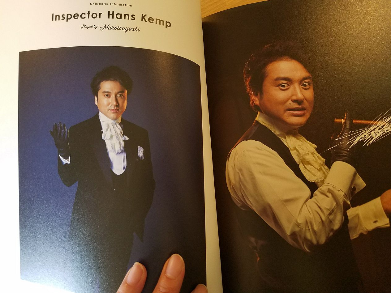 一方、演者であるムロツヨシ君はケンプ警部という役どころと聞いていましたが、実際にはその役以外に何役ものキャラを演じ、常に客席を楽しませてくれていました。