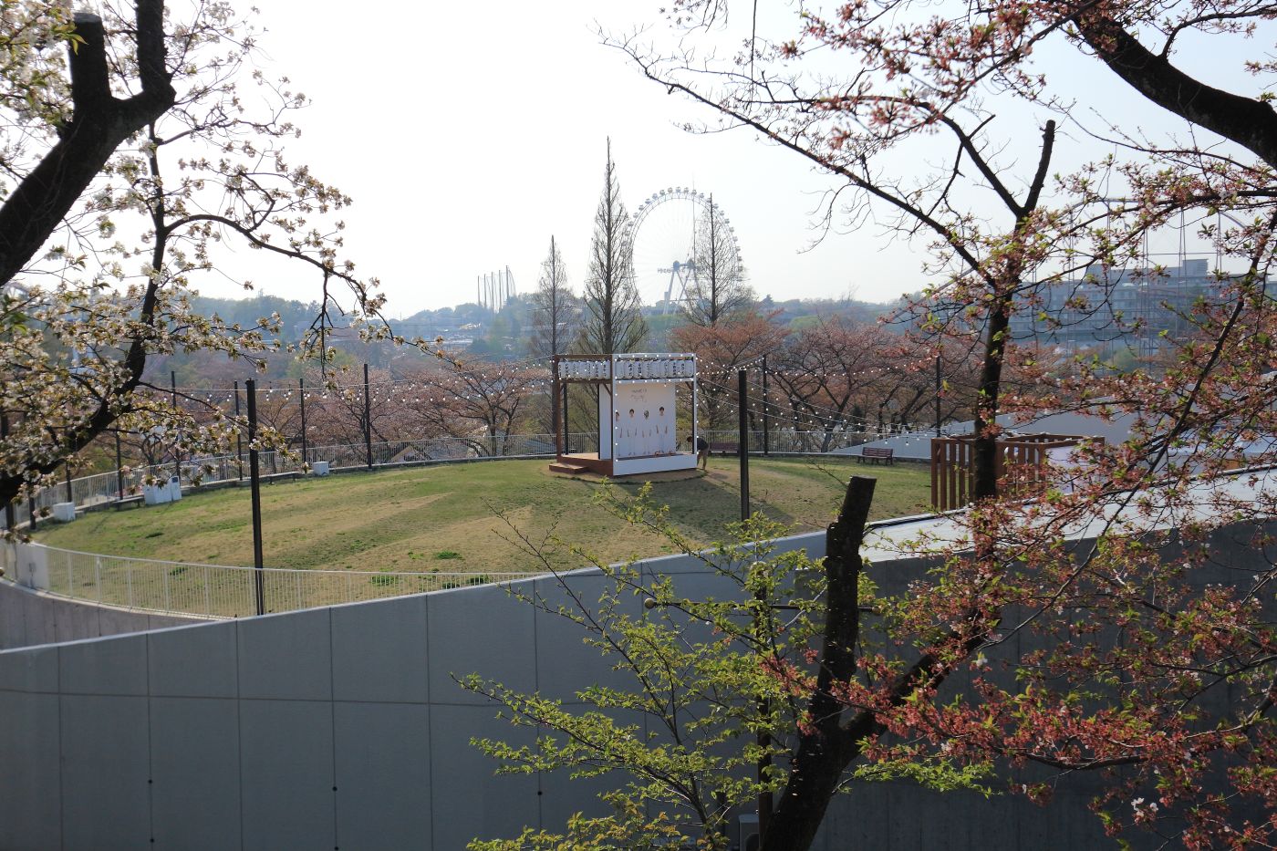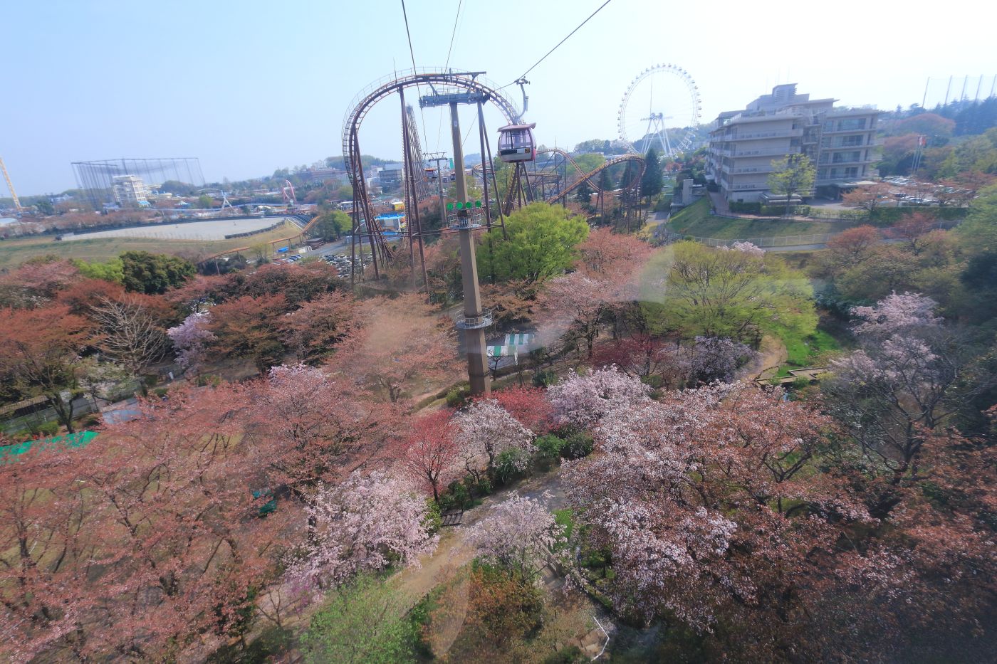 ランド内とその付近は桜が多く植えられているので、満開の時期はとても綺麗!