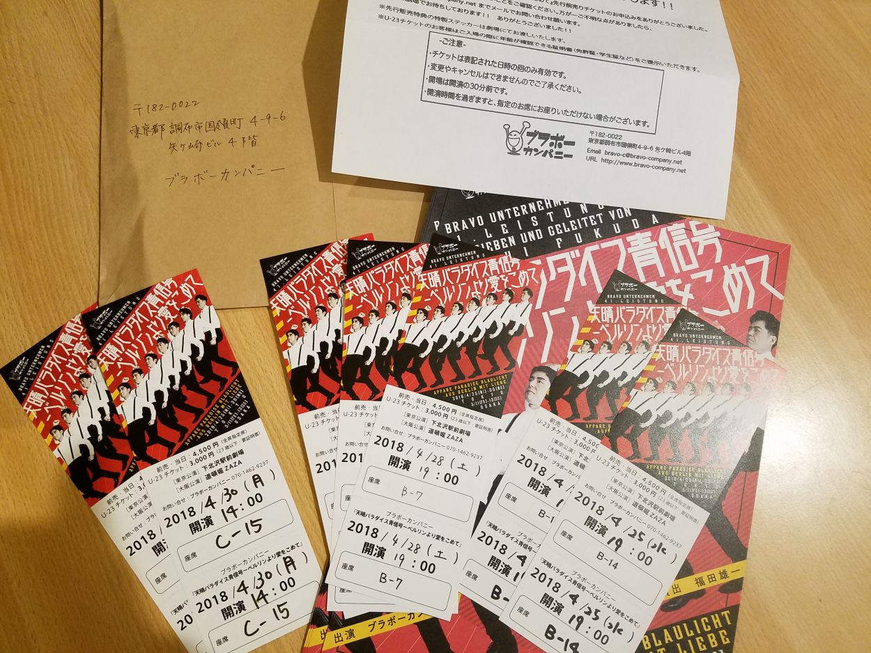 チケットは劇団先行で予約。