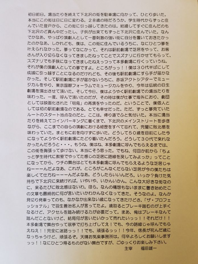 さて、今回は3回観劇しましたが、演出家である福田監督の姿を拝見することはありませんでした。
