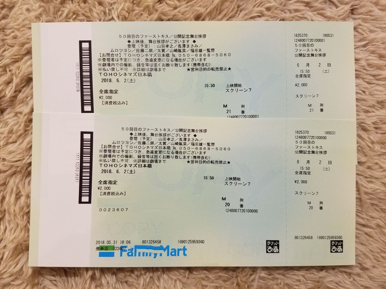 映画の初日を金曜日へと前倒しする悪しき習慣が根付こうとしている今日この頃ですが、ラッキーな事に50回目のファーストキスは、土曜日に舞台挨拶をやってくれました~♪
