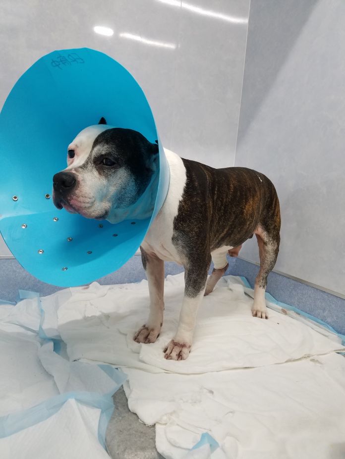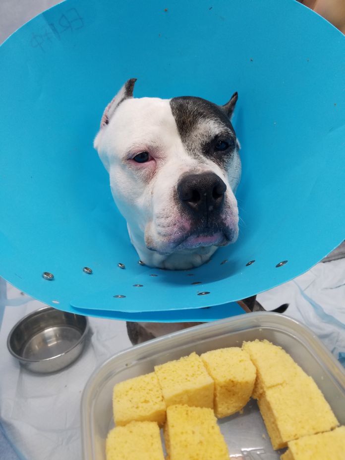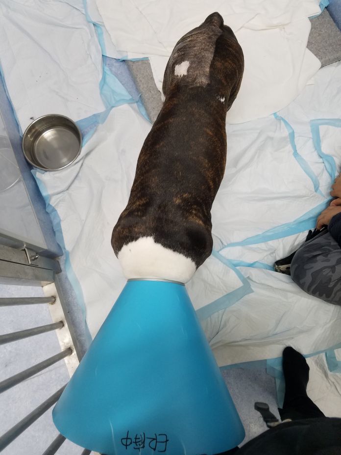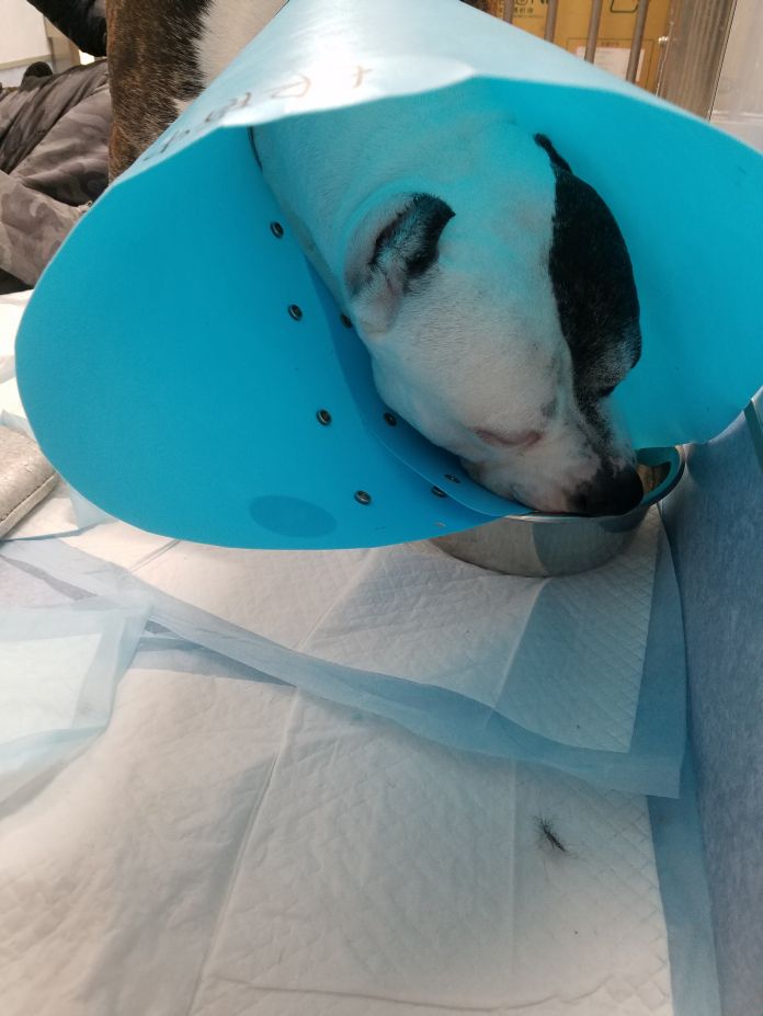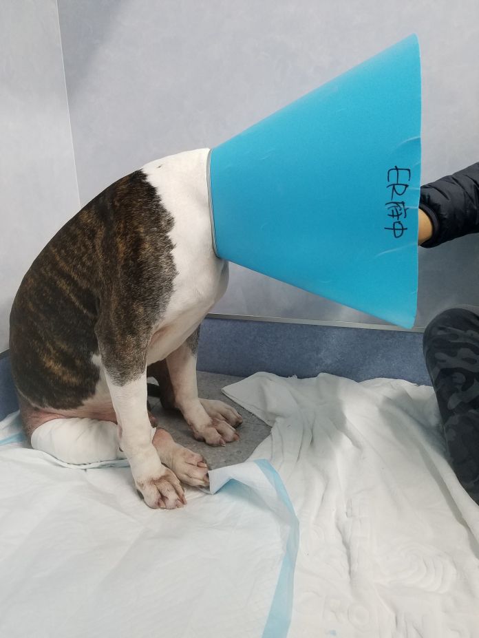 しかし、入院中は傷口を舐めてしまうのでカラーを着用。