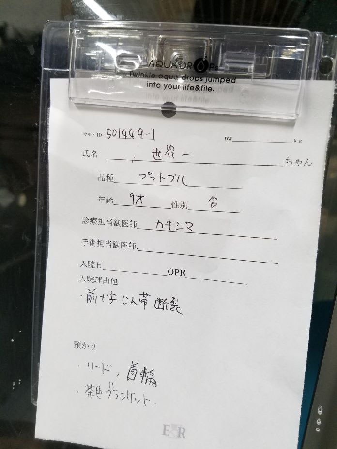 脚が不自由なので、時にその毛布を汚すことがあろうかと、予備の毛布を常に準備して、その時がくれば取り換えられる様にと気を使いましたが、汚れるとER側で洗濯し、敷きなおしてくれました。