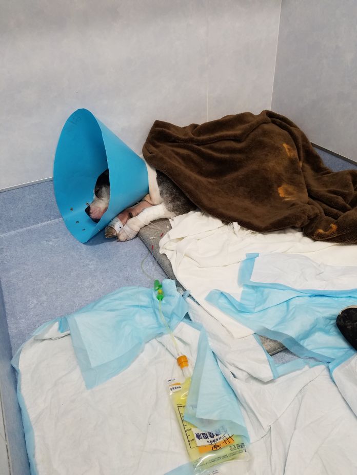 患部と太ももの辺りがとてもパンパンに腫れていて、とても痛々しい・・・。