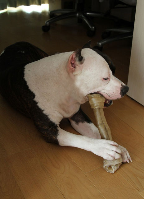 骨かじりサイコー♪相変わらず、お家の中ではこれが大好き