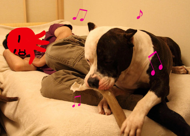 必ず骨を私達の足元に持ってきて、ハミハミしているところを見ていて欲しいタイプの人。