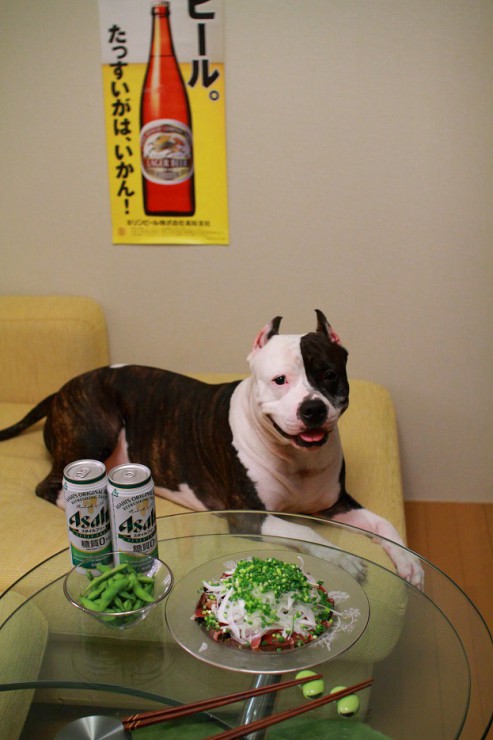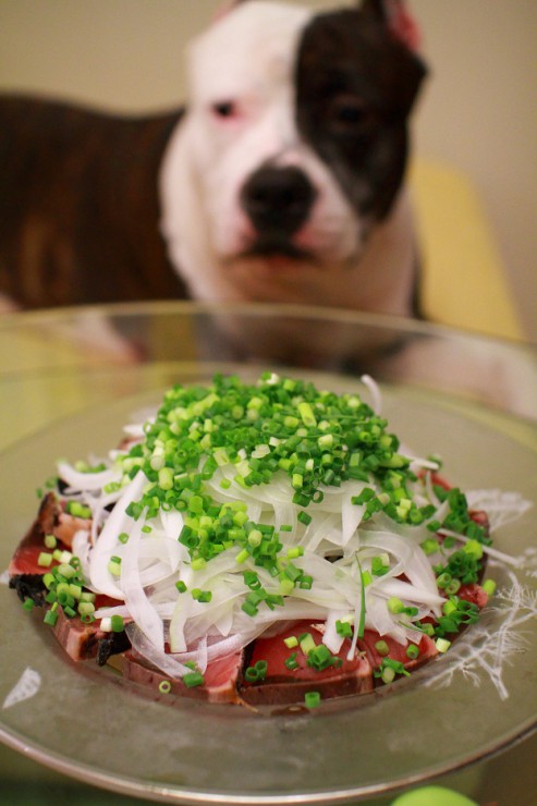 皆さんお気づきのとおり!今晩のおかずは、カツオのたたきだ!