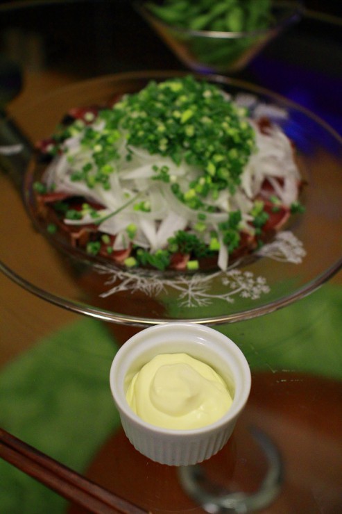 さて、我が家のカツオのたたきは、タマネギ・小ネギが、こじゃんと盛られたサラダのようなところが特徴です。