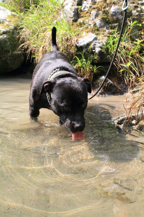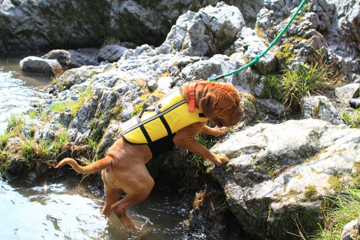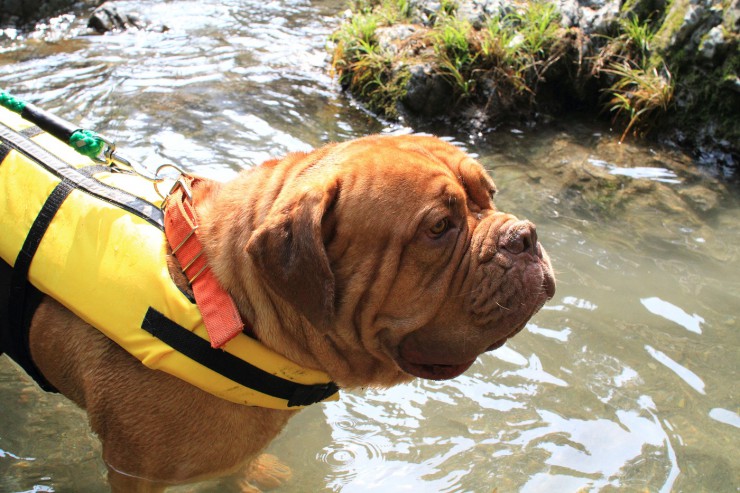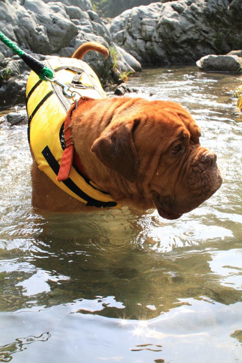一緒に行ったボルドーマスチフは冷たい水に浸かって本当に気持ちよさそうでした♪