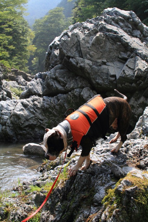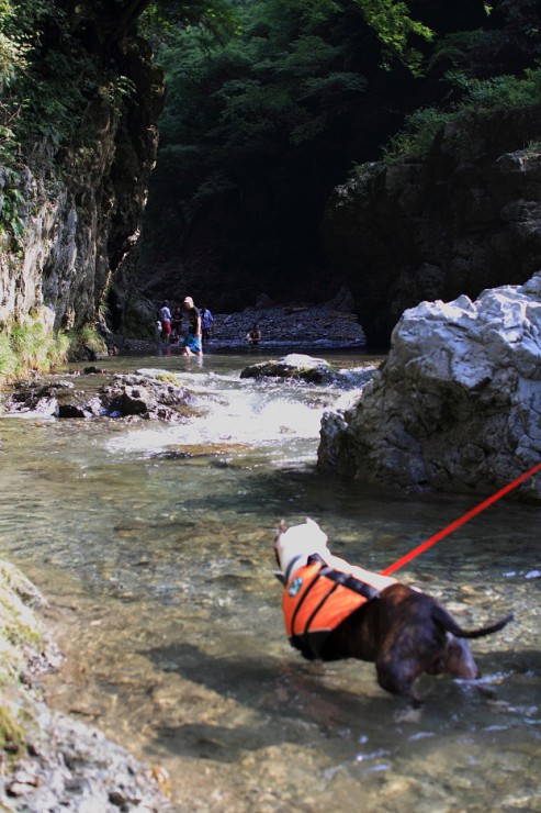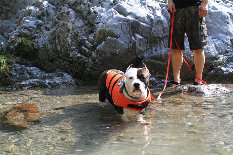 こんな風に川で遊べるワンコになってほしいものだ。。。