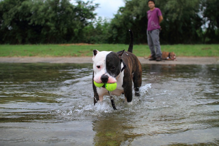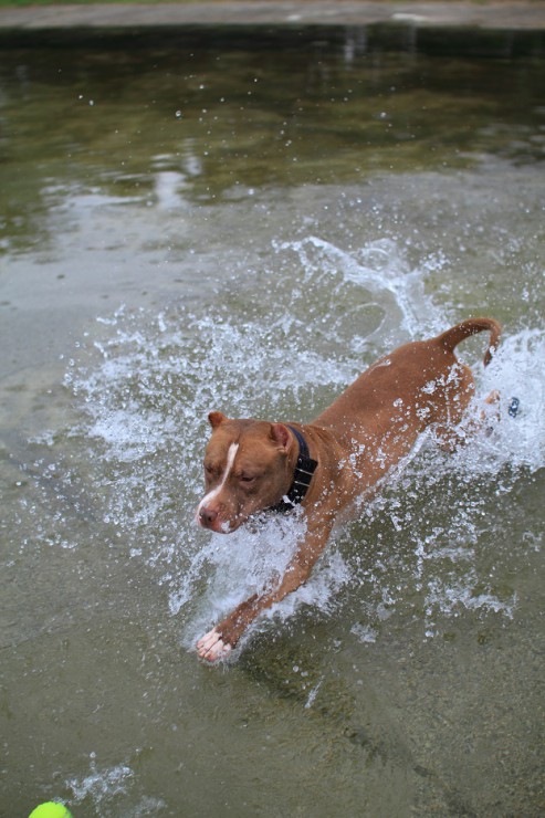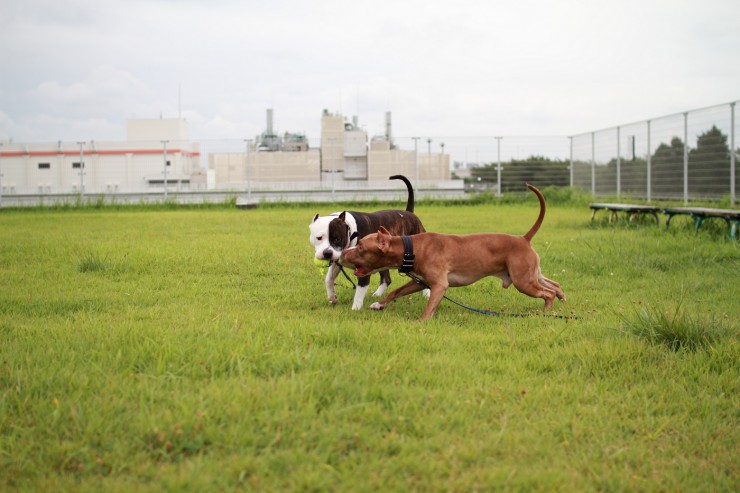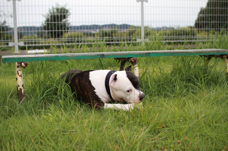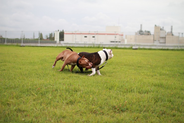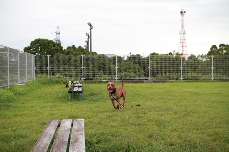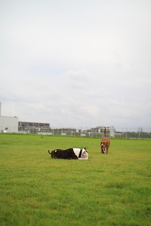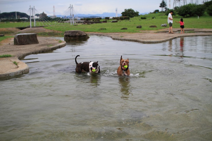 池で泳いで、貸切状態の公園でボール遊びで走って(卍丸号のみが)、