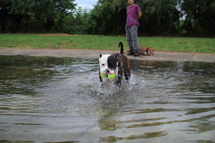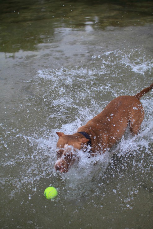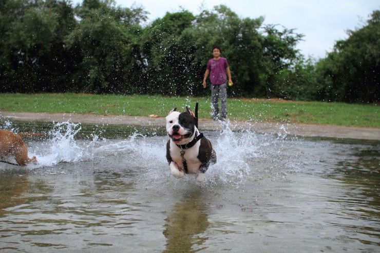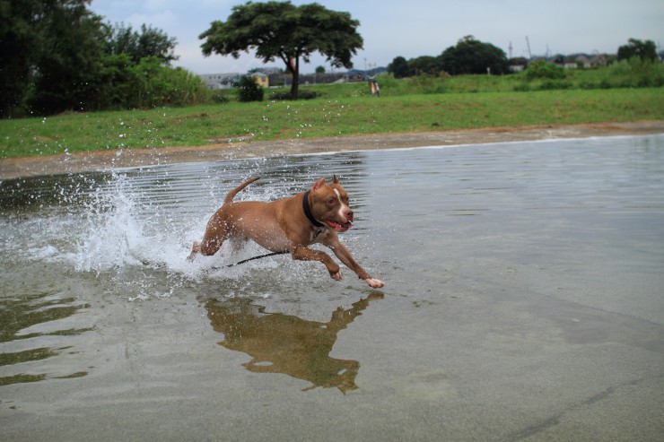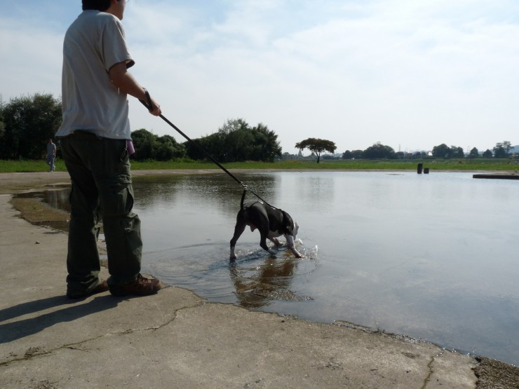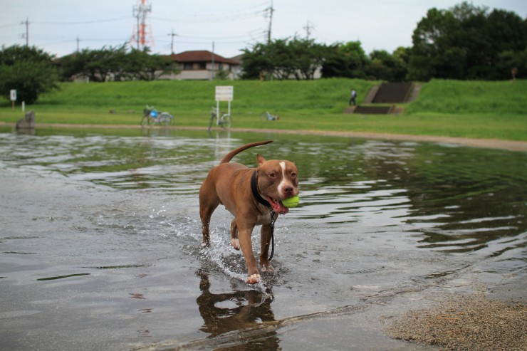 水の抵抗で走り辛いので、家に帰ったら疲れてヘソ天で、ぐっすり寝てくれる事でしょう♪