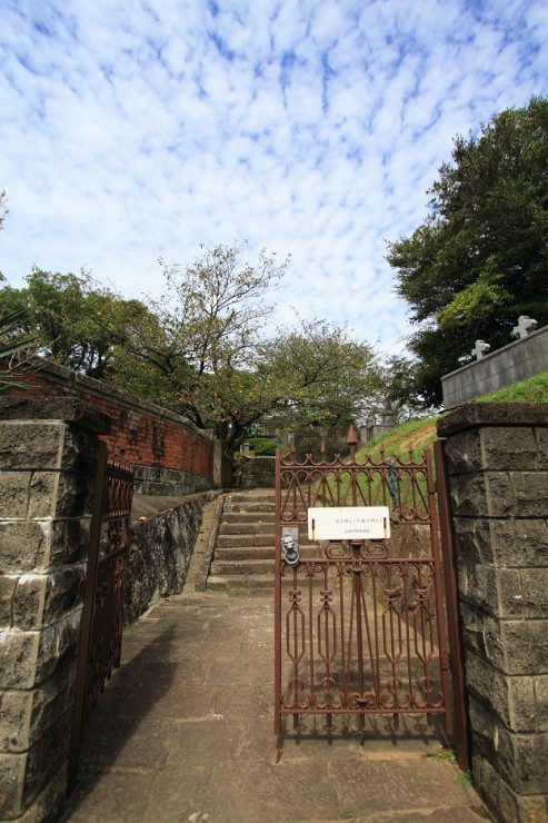 天主堂を囲う壁と墓地に挟まれた細い坂道ですが、YAMAさんがとても楽しみにしていた場所です。