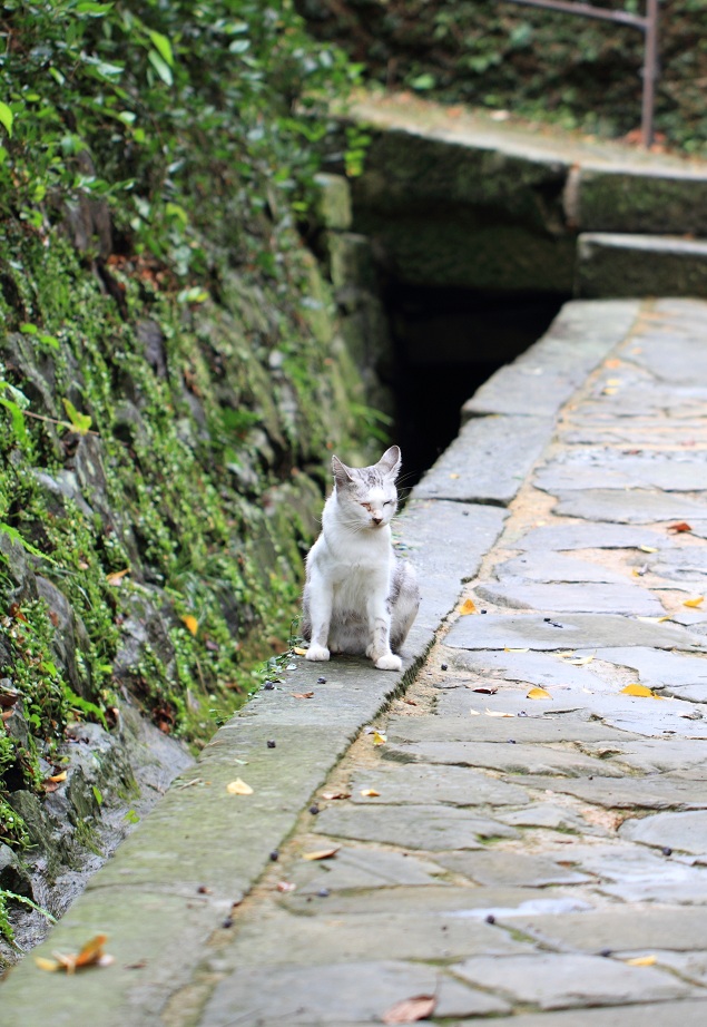 長崎でたくさん猫を見ましたが首輪をしているのは、この子だけでした。