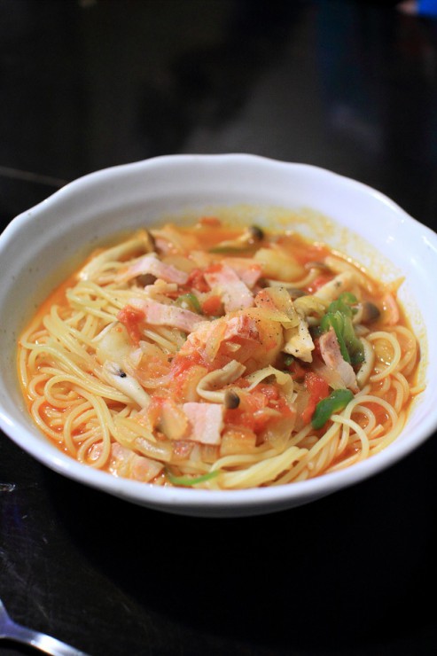 カレー風味のトマトスープすぱげてぃ