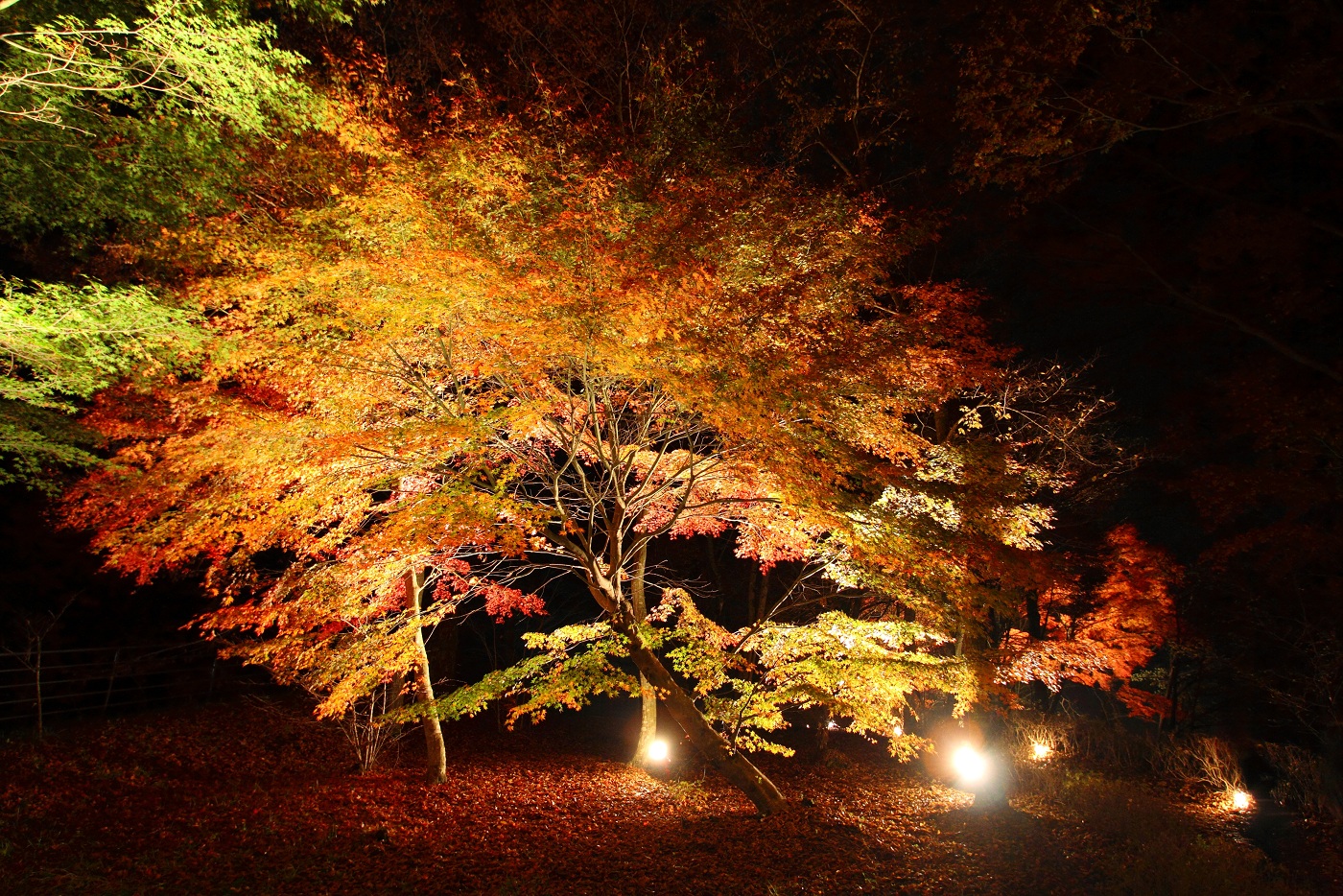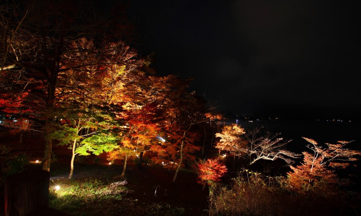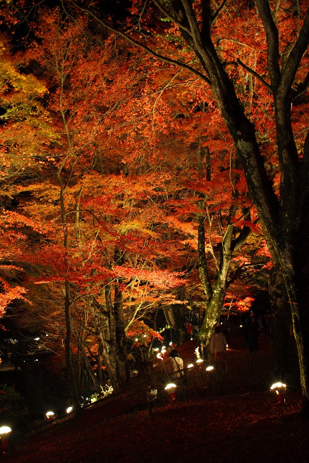 もう真っ暗ですが、紅葉のライトアップ「夕焼けの渚・紅葉祭り」をやっているので、紅葉はバッチリ見れます!