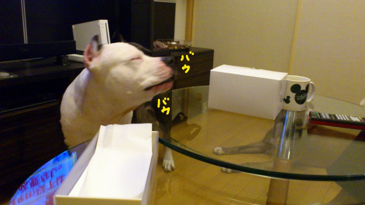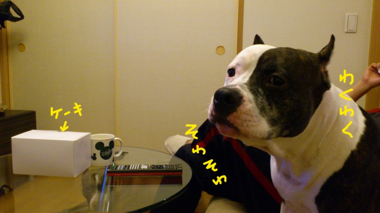 なかなかケーキを出さないので、いちくんが小さな声でバウバウ言いはじめました。