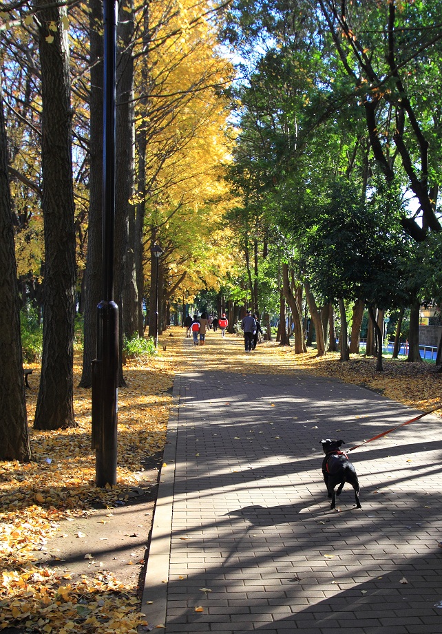 さくら家いつものコースは、広~い公園の紅葉を楽しみながら優雅に散歩。