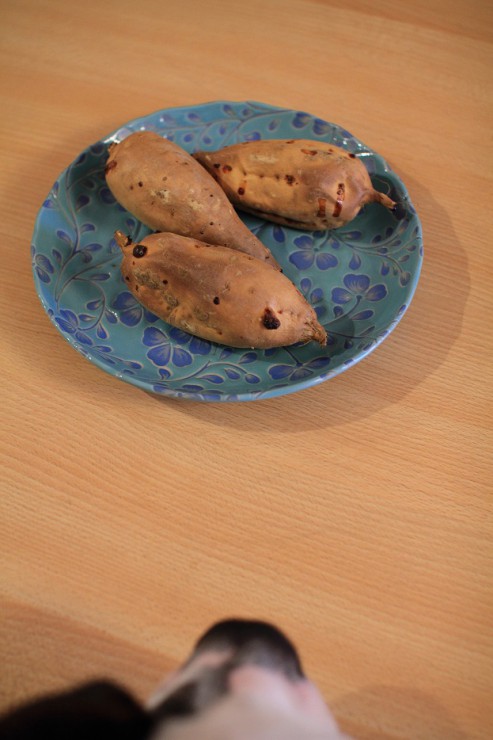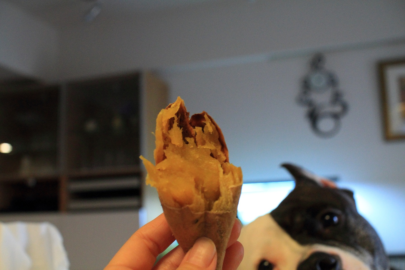 *この日は安納芋の焼き芋。出来上がりは、白い表面から蜜が滴りホラーな一品!