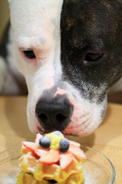 ワンコ達のケーキも以前買って、この日のために冷凍してとっておいたワンコワッフルに、