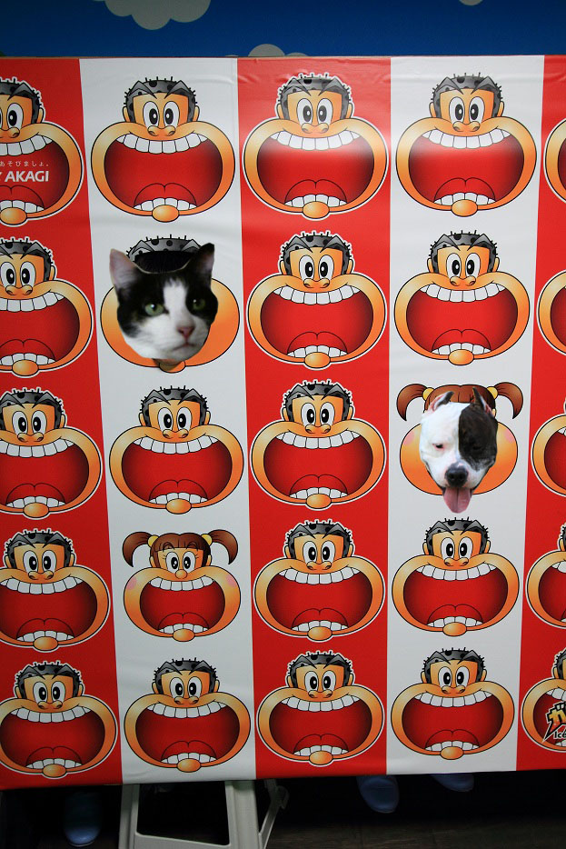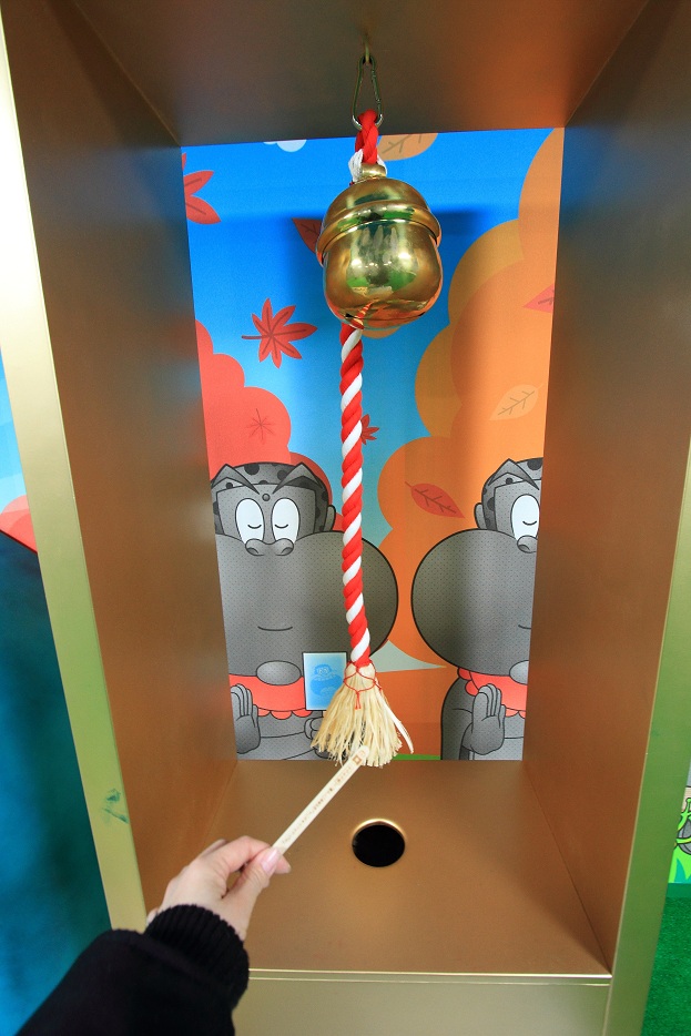 お口にお願い事を書いたアイスの棒を投げ入れ、うまく入れば願い事が叶うらしい・・・。