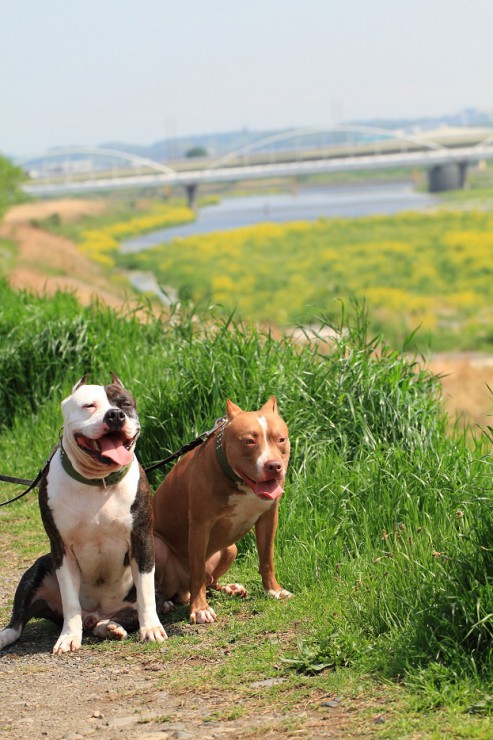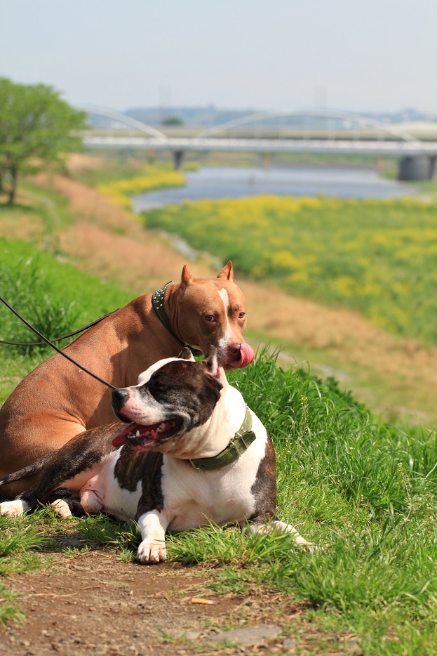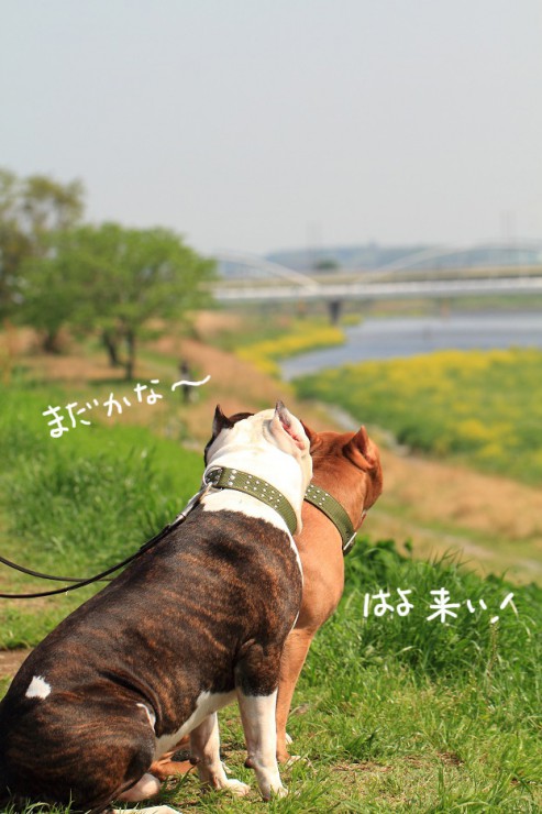 待ちに待った連休の初日は、犬達を連れてボール遊び♪
