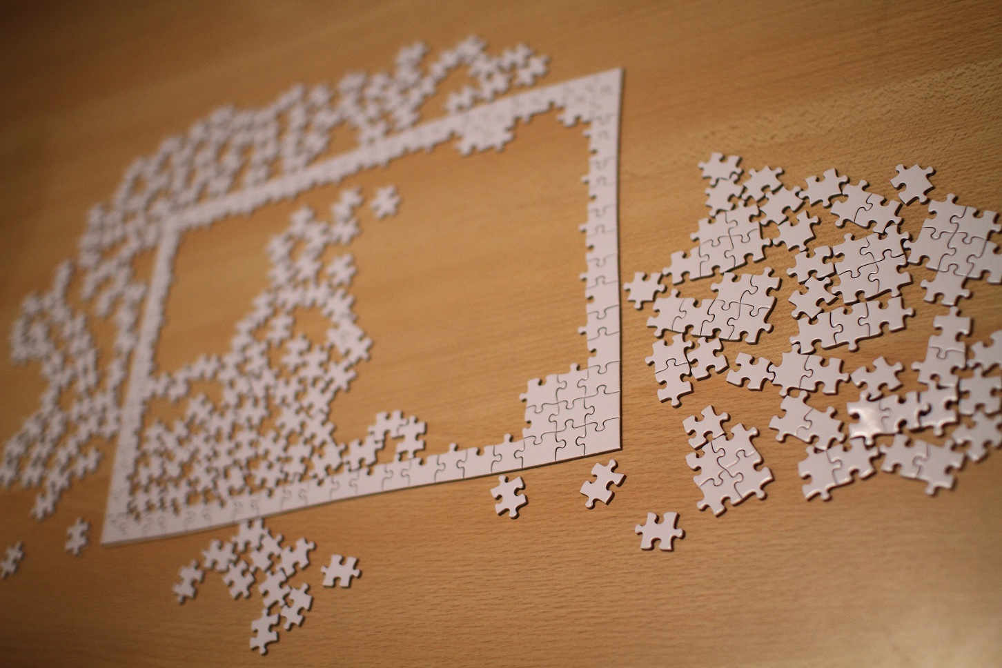 まずはピースを全て表面にし端と、そうでない部分に分け、端の部分から組み立てていきます。