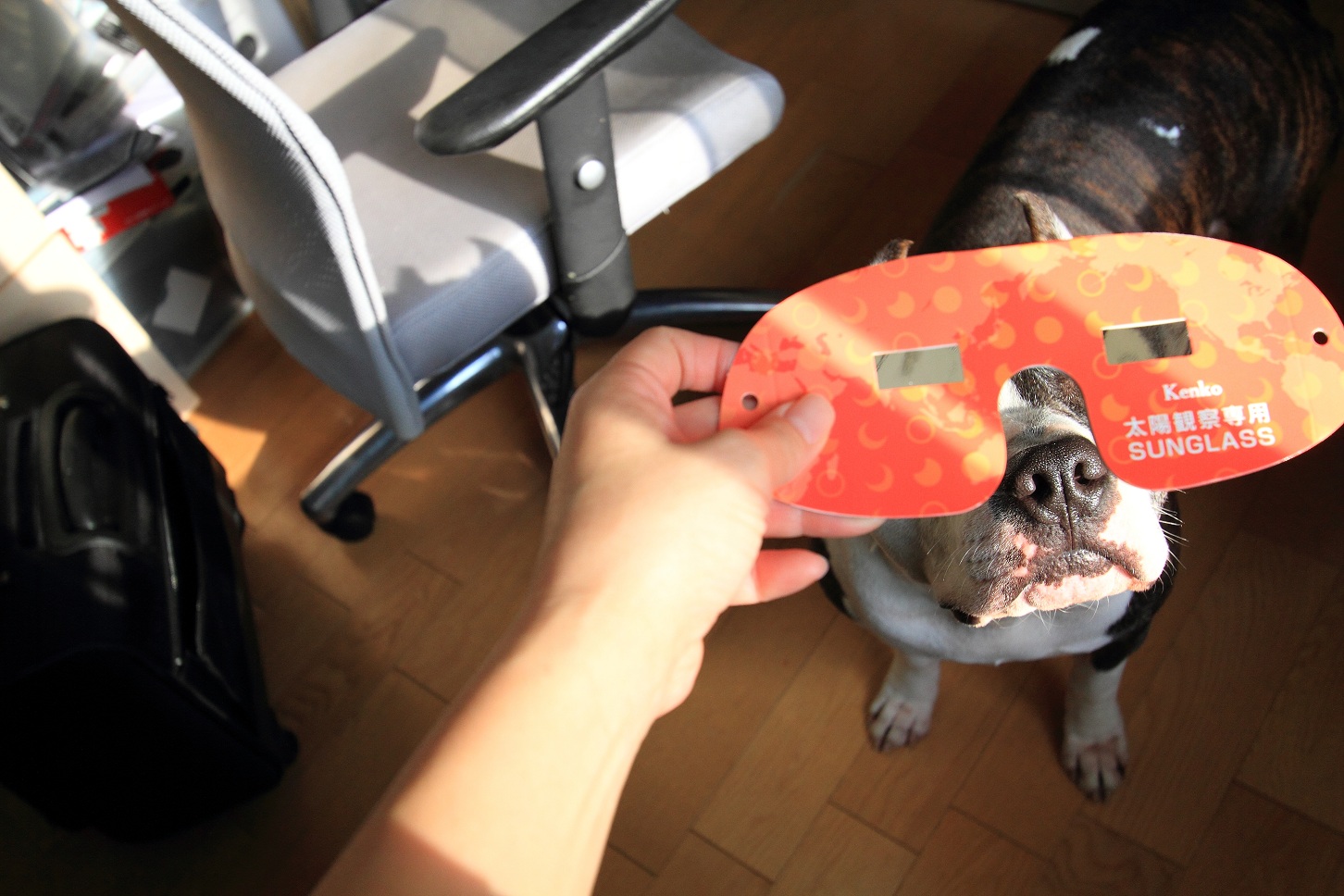 そんな彼らに日食用サングラスをさせた適当な写真を何枚か撮り、