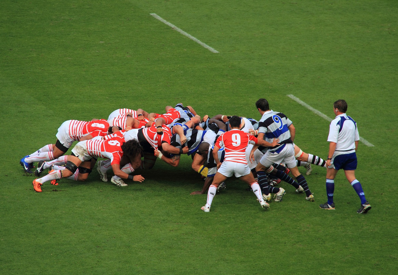 なので、なんかラグビーっぽい「スクラム」の写真や、