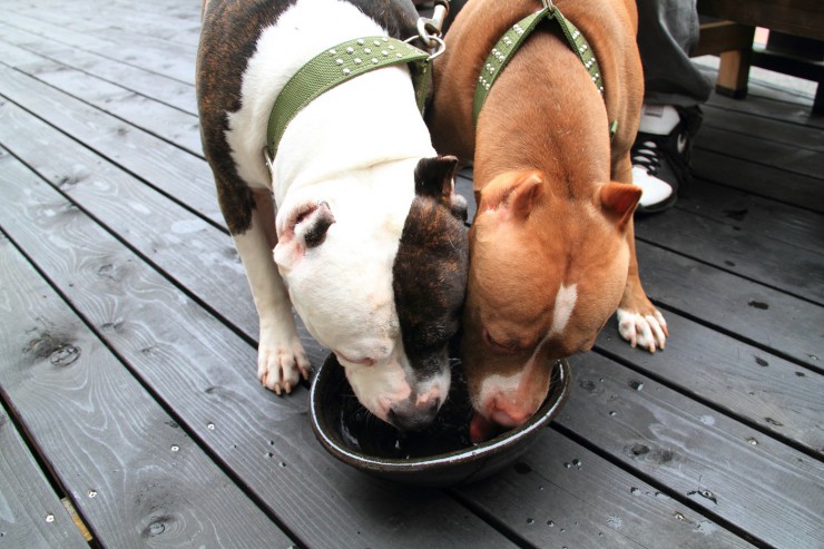 親切に我が犬達に暑かろうと水までくれて!