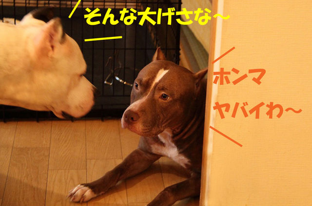 部屋の隅っこへと逃げ込むマ~さん。