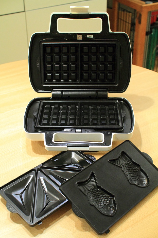 このワッフルメーカー、他にも鯛焼きや、ホットサンド用のプレートも付いていて、