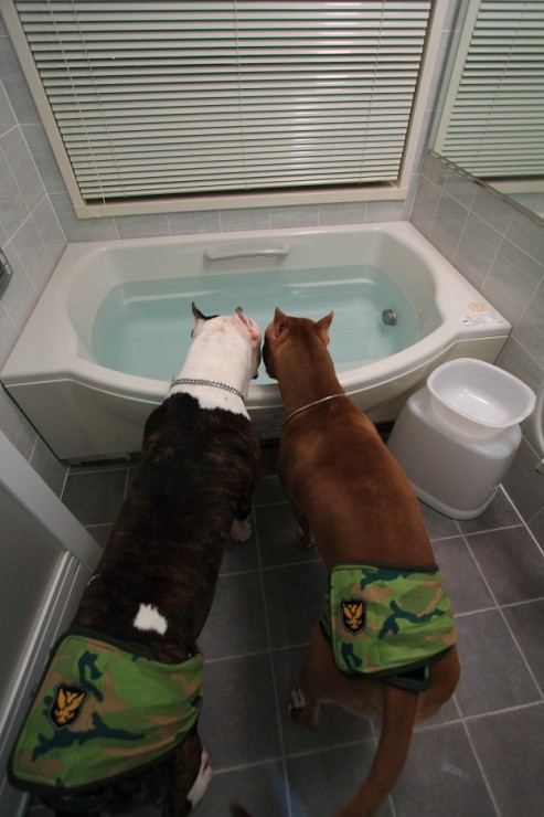 そんなお風呂場は、イヌ達の水飲み場でもあります!