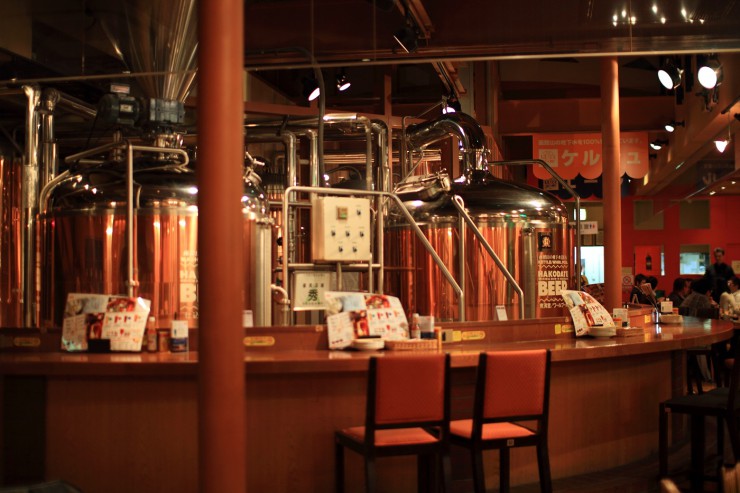 ここ、はこだてビールは工場併設のレストランなので、醸造タンクが店内にあります。