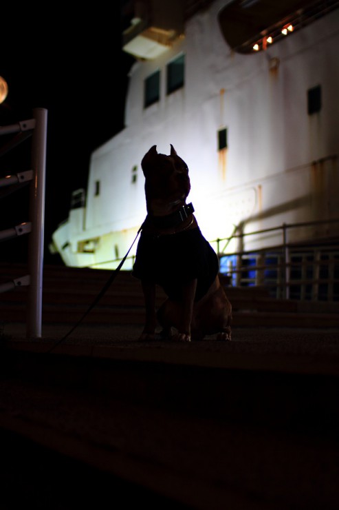 港は真っ暗で、海との境が分かり辛く怖い・・・。