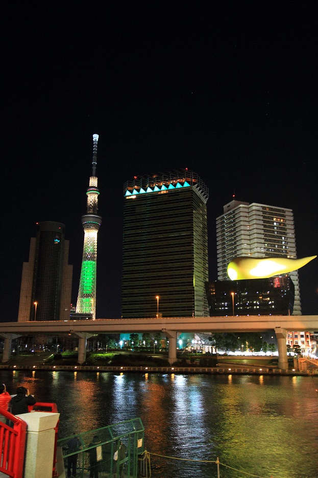 帰りのスカイツリーは、クリスマス限定ライティングのシャンパンカラーになっていたよ♪