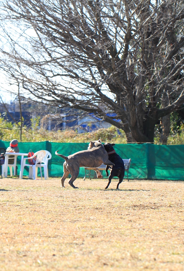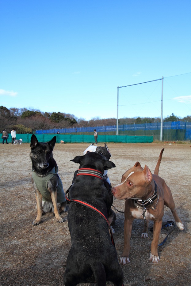 広いランに沢山のイヌ達が居たので、いちくん&マ~さんを監視するのに必死になってしまい、