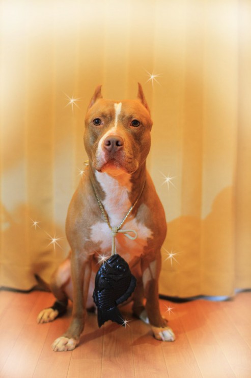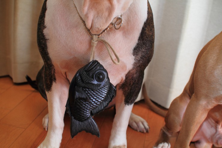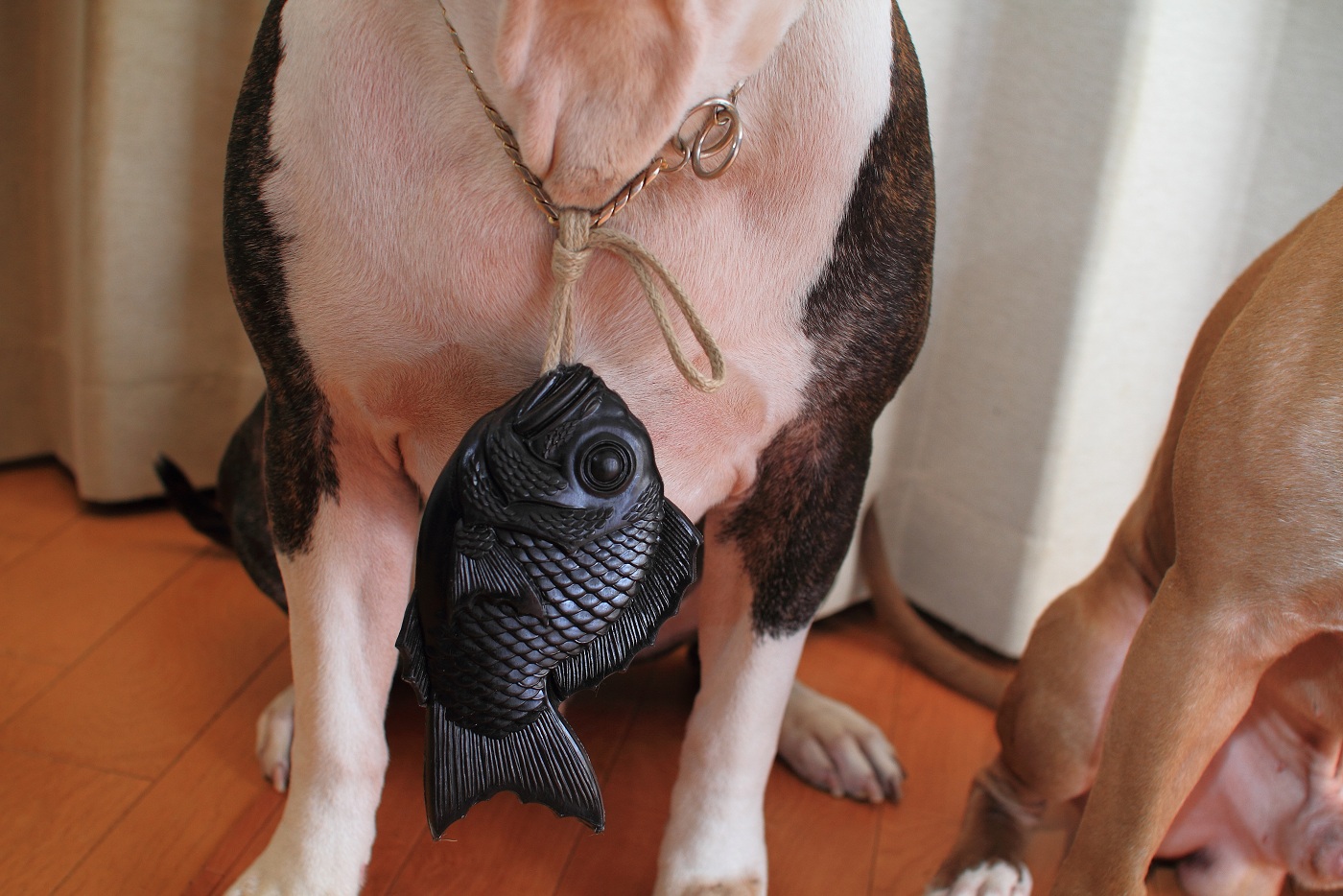 本当は口に咥えて欲しかったんだけど、うちのイヌ達は出来ないのよねぇ~。