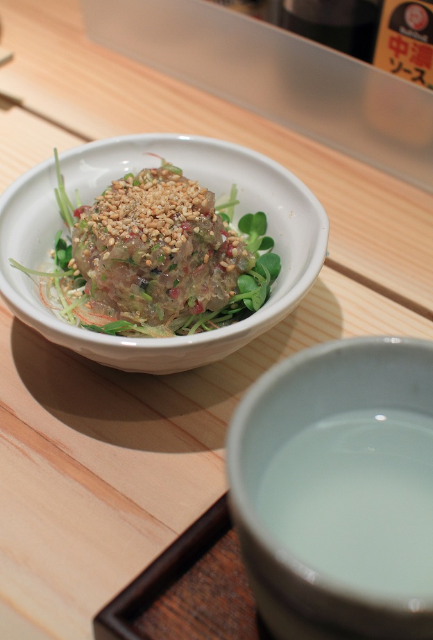 薬味がたっぷり練りこまれて、ゴマの風味が香ばしい「アジなめろう」