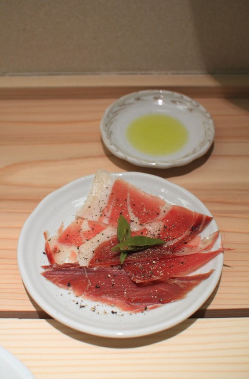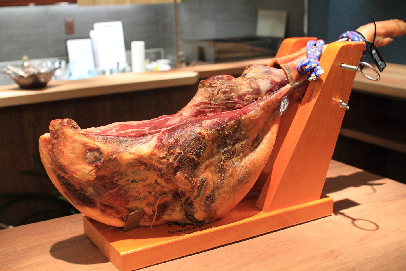 それと、カウンター奥の厨房に、「ハモン・セラーノ」の姿を発見!