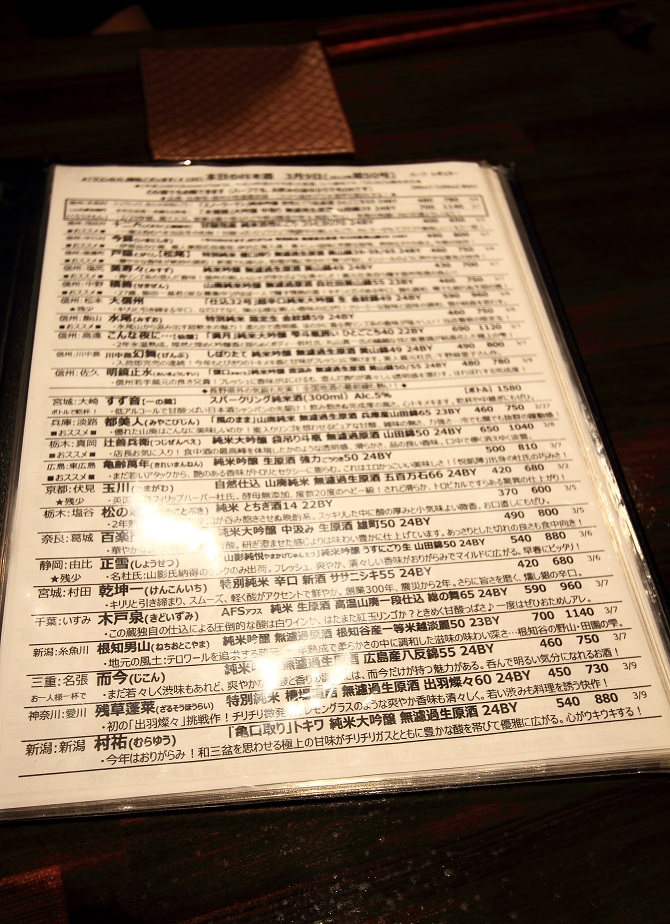 日本酒の種類も豊富で、メニューには思わず頼んでしまいたくなる楽しい説明書きがありました^^