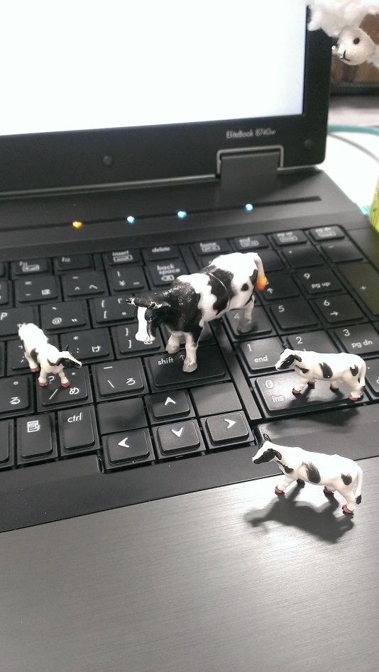 会社で貰うから、私の机の上も牛さんいっぱい♪