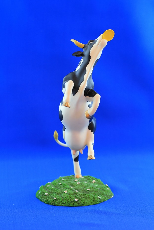 フリスビーをしている牛さんです。