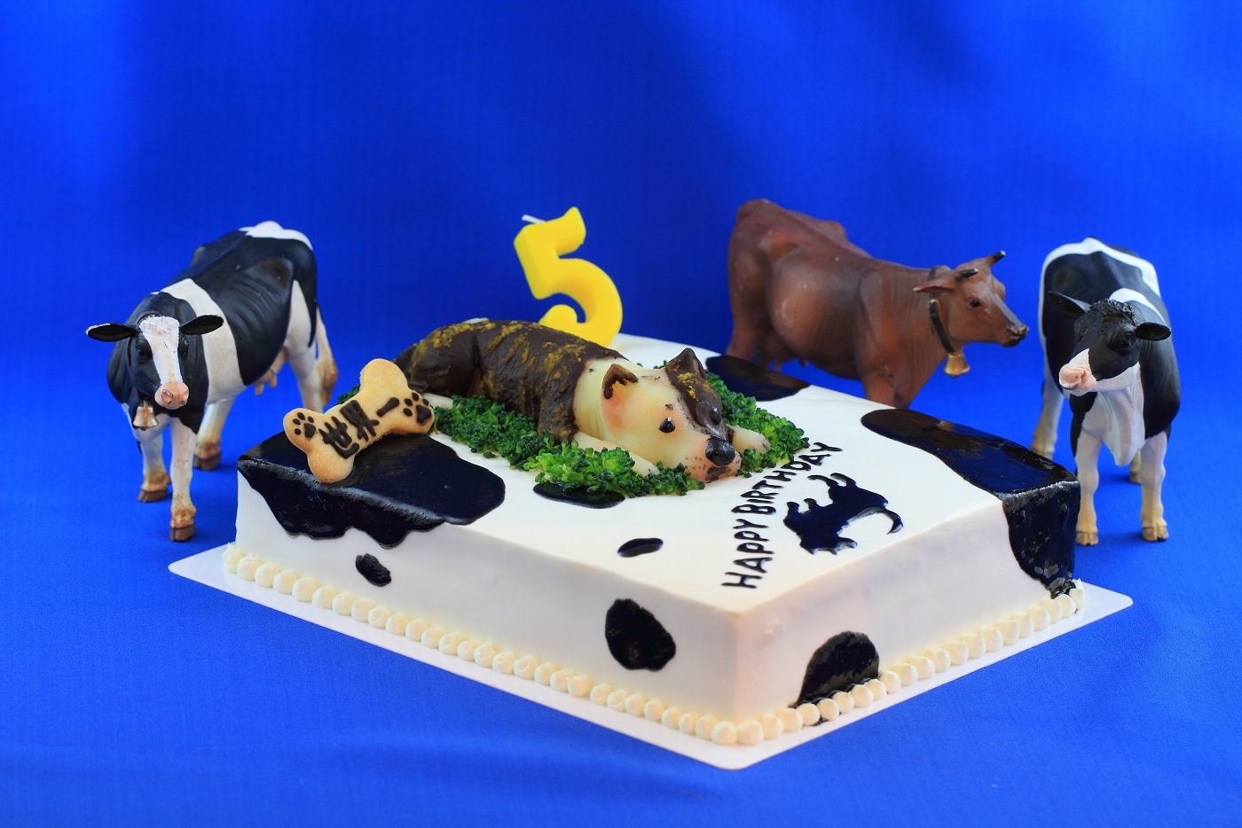 TAMAさんの撮影テクと牛さんの友情出演によりケーキがより素晴らしく写ってます。