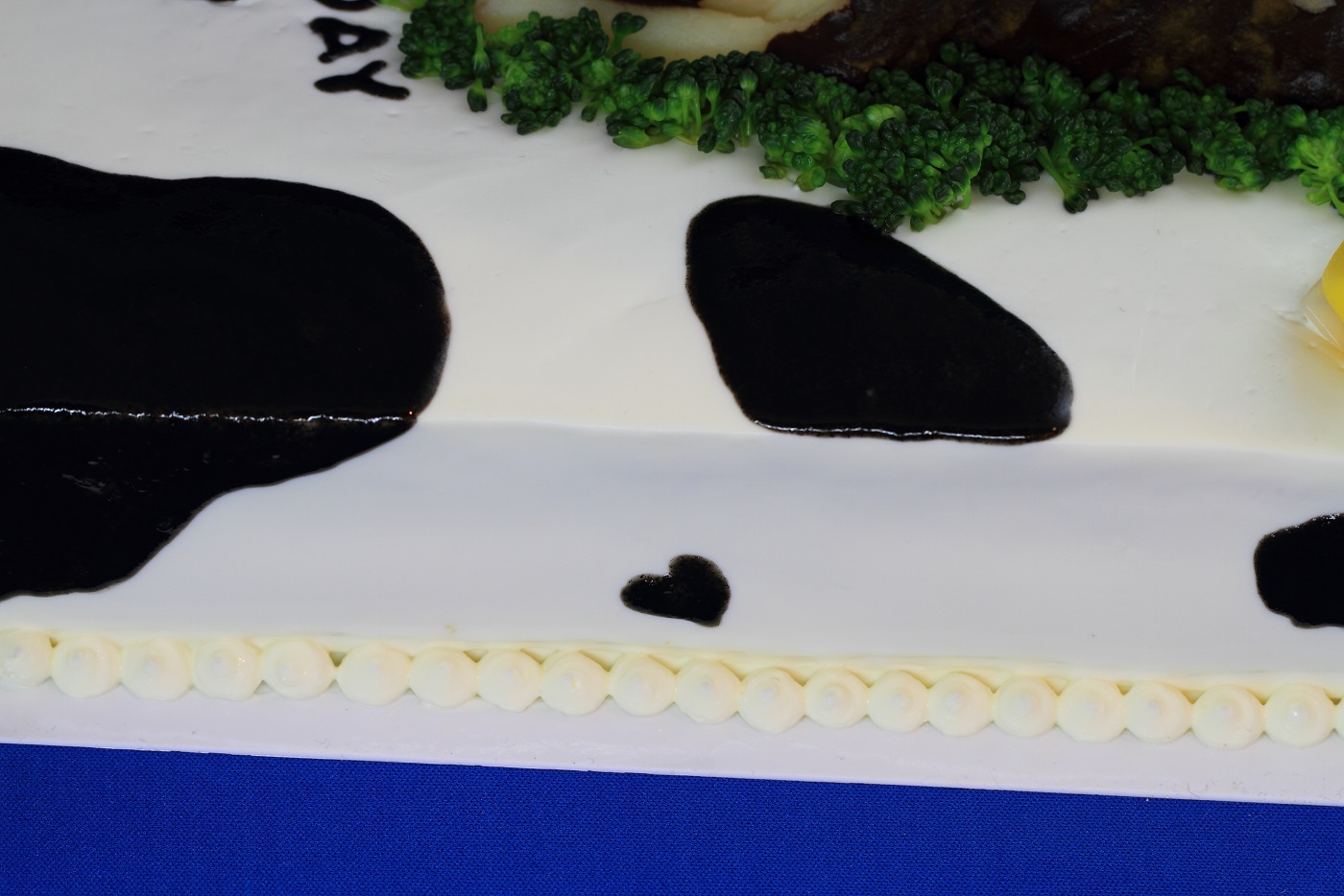 ケーキのサイドには、これまた牛柄のハートが!