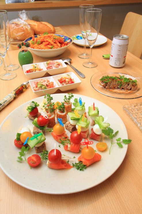 *ここに至るまでも準備に手惑い、さくら母にピンチョス作るの手伝ってもらいました^^;
